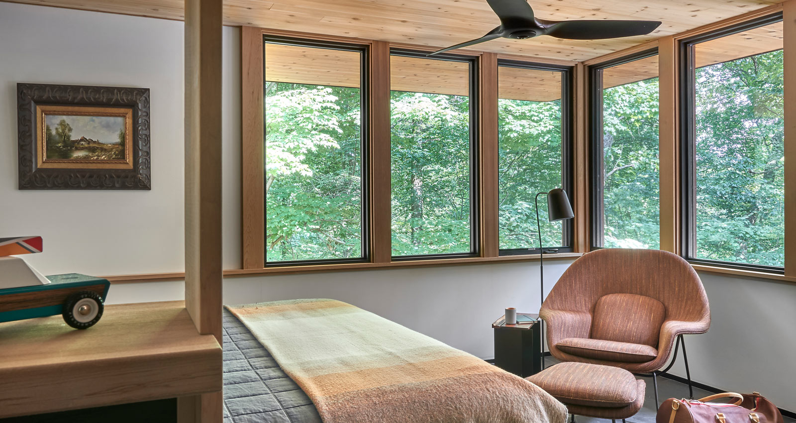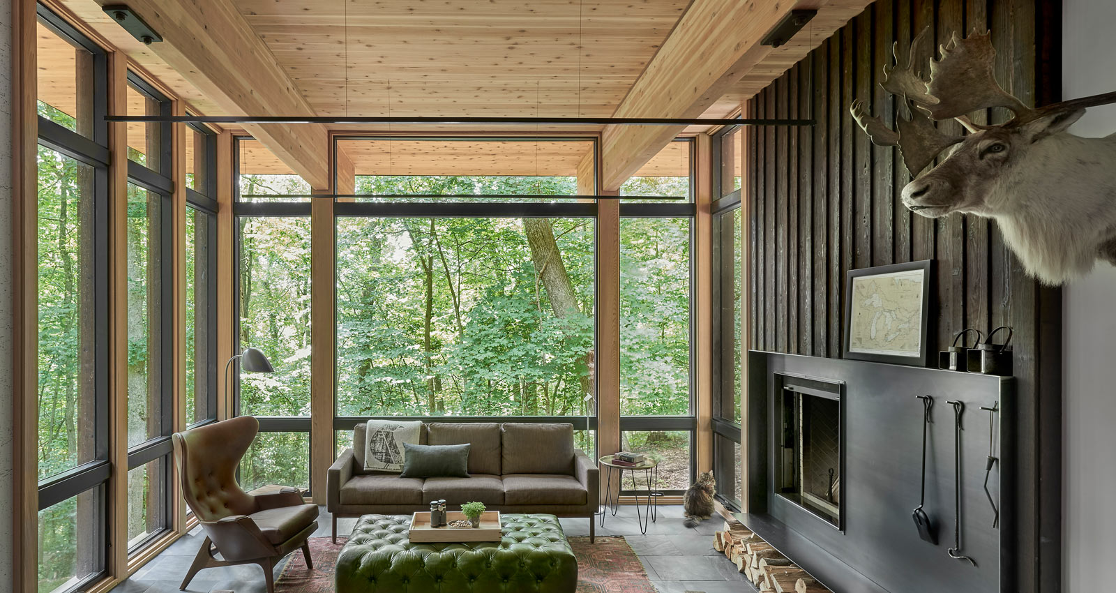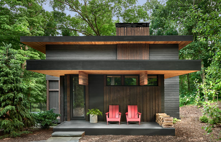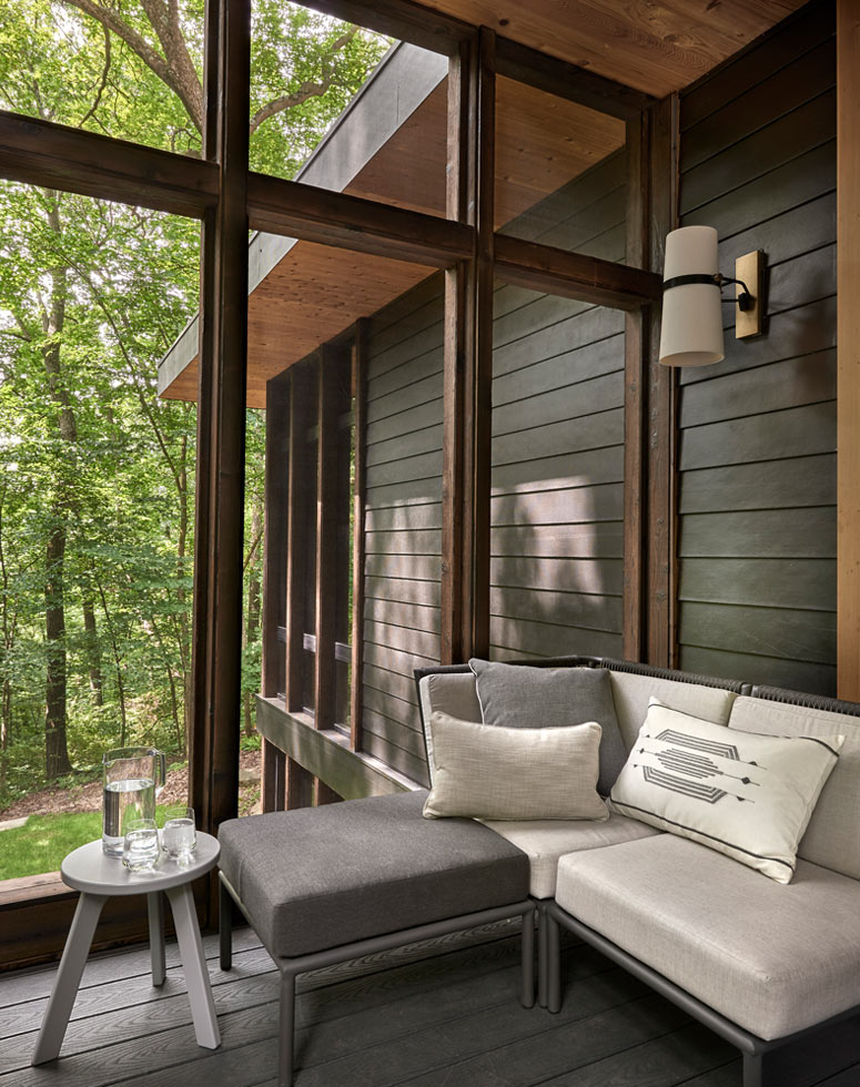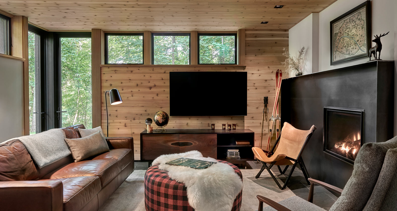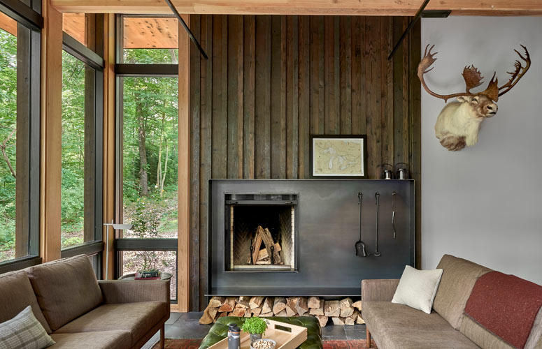 Inspired by the idea of a sanctuary with a modern sensibility, the cottage ties seamlessly to the outdoors, through both materiality and expansive views. Carefully chosen materials, many from the region, create a distinctive home that still allows the surrounding maple, oak, cedar, aspen and ash trees to take center stage.